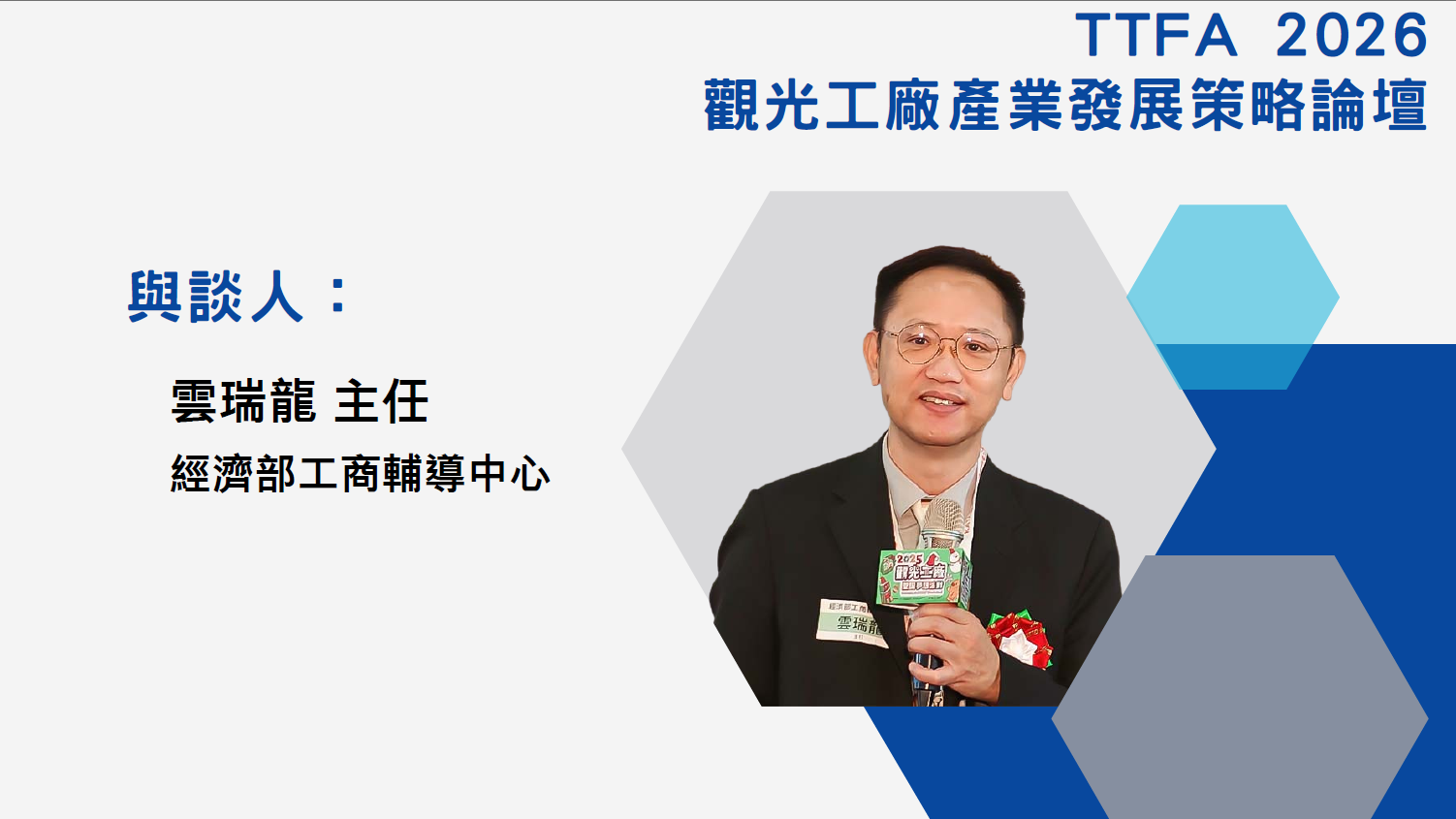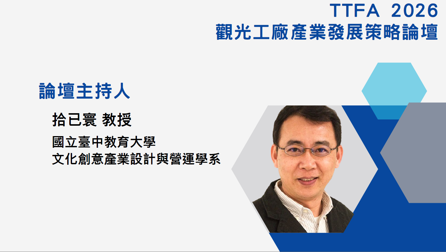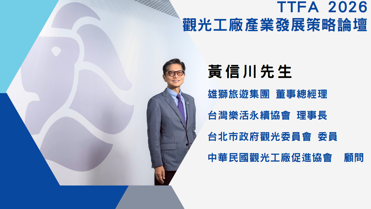 ![]() ![]() ![]() 【推廣觀光工廠策略論點分享交流】 主持丨國立臺中教育大學 拾已寰教授 分享與對談丨 新北市政府經發局 盛筱蓉局長 桃園市政府經發局 張誠局長 彰化縣政府經綠處 張寒青處長 經濟部工商輔導中心 雲瑞龍主任 ![]() 【旅遊產業專題分享】 【C h a n g e - 迎新局】 主講丨雄獅旅遊集團 黃信川董事總經理 |